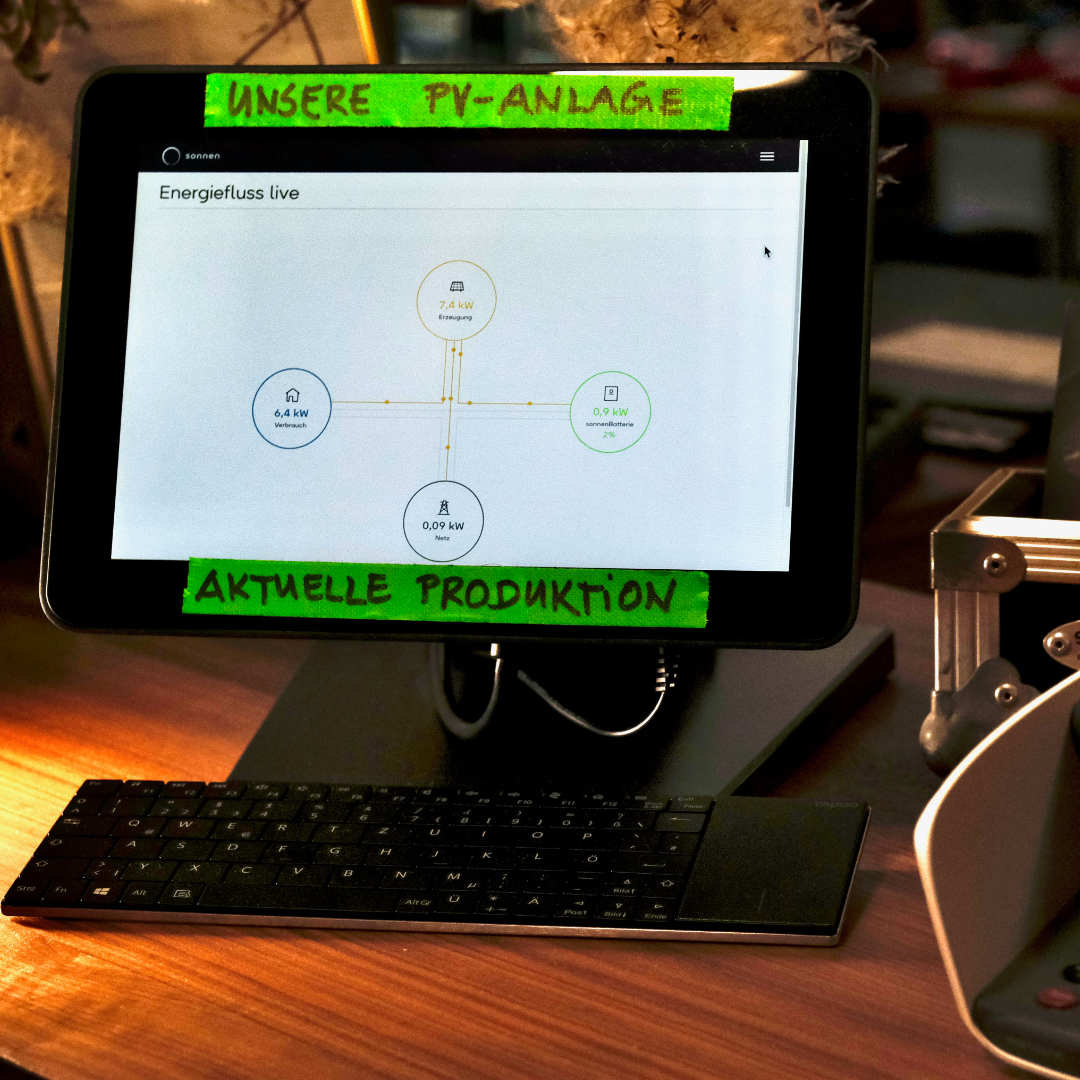 Eine weitere wichtige Nachricht: Die Energie für Mobilität und Standortverbrauch fällt wirklich vom Himmel und sorgt für die Freude, dass wir den CO2-Abdruck unserer Firma durch die Investition in eine sinnvoll berechnete PV-Anlage drastisch reduziert haben. Unser Feststrom kommt von Green Planet Energy und ist nachhaltig ökologisch produziert und damit ebenso sinnvoll für die notwendige Energiewende.